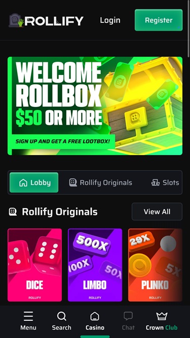 另请注意,Rollify Casino 可让您通过电脑或移动设备畅玩赌场游戏,因为它已针对所有可用设备进行了完美优化。无论您使用何种屏幕尺寸,快速的网络连接都能确保游戏快速加载。鉴于这里的一切都非常人性化且井然有序,您在这个前景广阔的加密货币赌场享受游戏时光是理所当然的。
