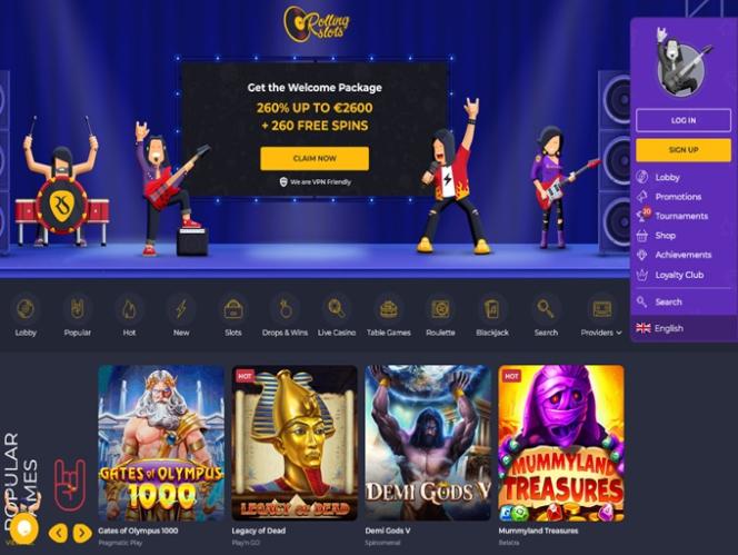 受到摇滚文化和赌场产品的启发,这家在线赌场决定将这两种激情完美地融合在一起,因此,在 2021 年,这家名字不寻常的赌场成立了——RollingSlots Casino。