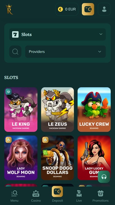 该赌场旨在确保玩家感受到“皇室”般的待遇,而这一切都始于向他们介绍网站。该网站拥有精美的主题、原创艺术作品以及深绿色背景和金色色调的配色方案,使整个环境感觉高端而专属。