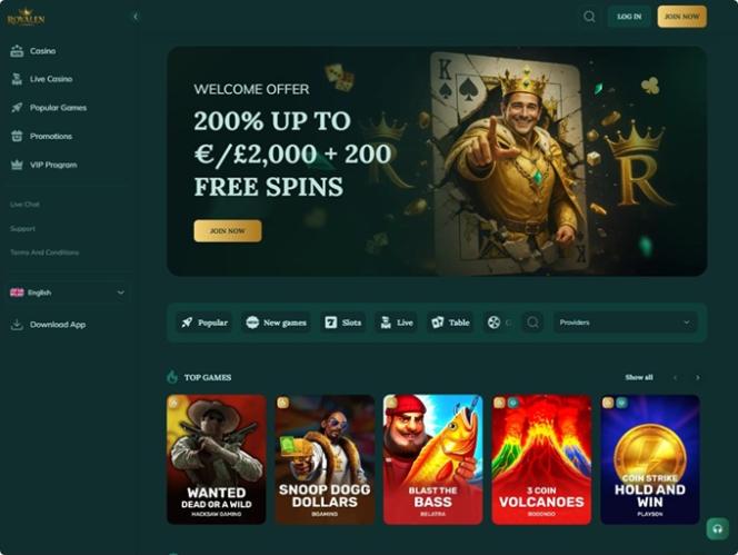 Royalen是一家在线赌场,致力于为英国、德国和荷兰的玩家提供全方位的博彩体验,提供种类繁多的赌场游戏,包括桌面游戏、即时崩溃游戏、真人荷官游戏和真钱老虎机。该品牌还以其丰富的促销活动、奖金和锦标赛而闻名,让玩家可以长时间沉浸其中。