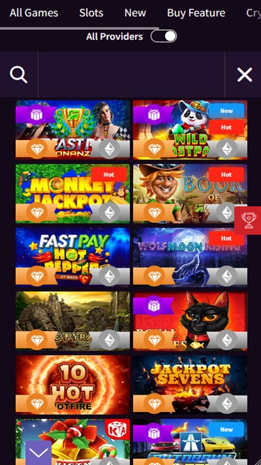 玩家可以浏览多个类别,包括购买功能、BTC游戏和累积奖金游戏。这为游戏目录增添了丰富的多样性,让玩家可以定期尝试新鲜刺激的游戏。值得一提的是,该品牌会不断推出新游戏,更新其产品。