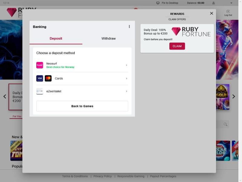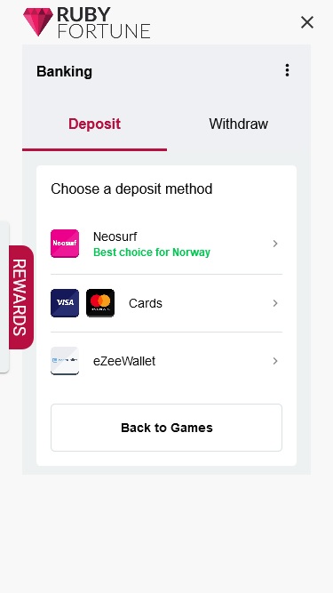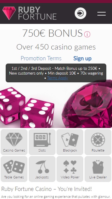 Ruby Fortune Casino 由 Microgaming, Net Entertainment, Evolution Gaming, Ezugi, Rabcat, Pragmatic Play, Red Tiger Gaming, Triple Edge Studios, Northern Lights Gaming, Stormcraft Studios, Switch Studios, Electric Elephant Games, All41 Studios, Gameburger Studios, Pulse 8 Studios, Neon Valley Studios, SpinPlay Games, Real Dealer Studios, GONG Gaming, On Air Entertainment, Buck Stakes Entertainment, Games Global, Old Skool Studios, Foxium, Just For The Win, PearFiction Studios, Wild Streak Gaming, Slingshot Studios, Fortune Factory Studios, Crazy Tooth Studio, Alchemy Gaming, Snowborn Games, Gold Coin Studios, Half Pixel Studios and Aurum Signature Studios提供支持,这为其提供了庞大的游戏库,并且可以通过可下载的软件以及基于网络的平台使用,您可以直接通过网络浏览器进行游戏。