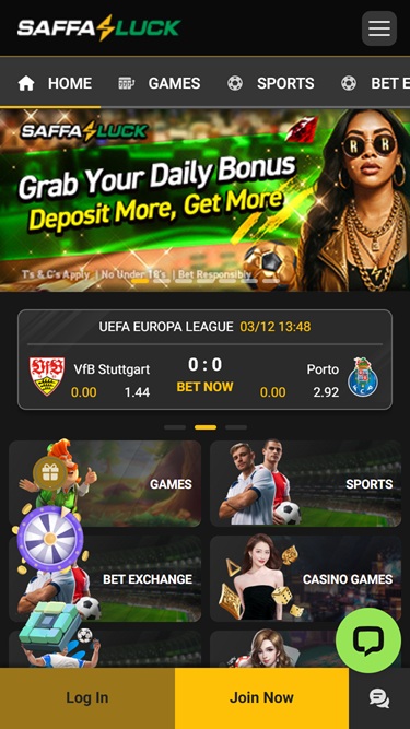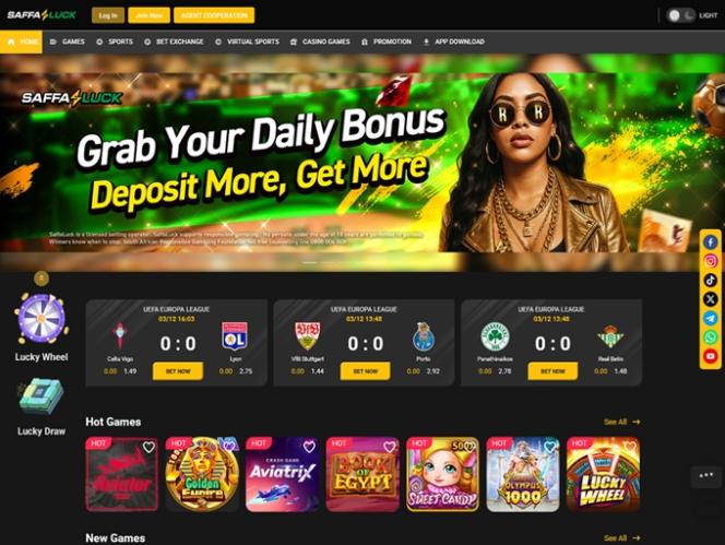 最后但同样重要的是,您每天都可以对数百场体育和电子竞技赛事进行投注,因为 SaffaLuck 设有专门的体育博彩版块,其中包含丰富的投注选项,包括虚拟体育和现场投注功能。