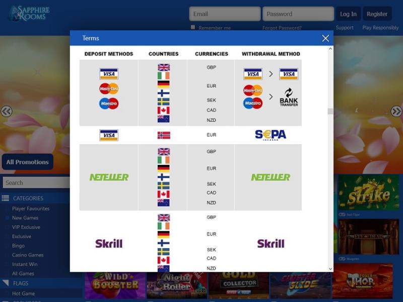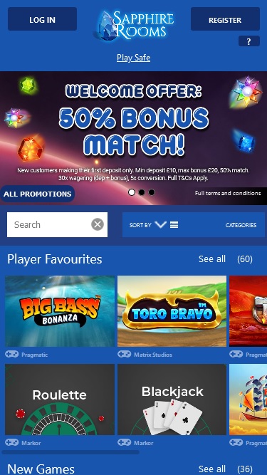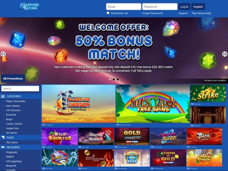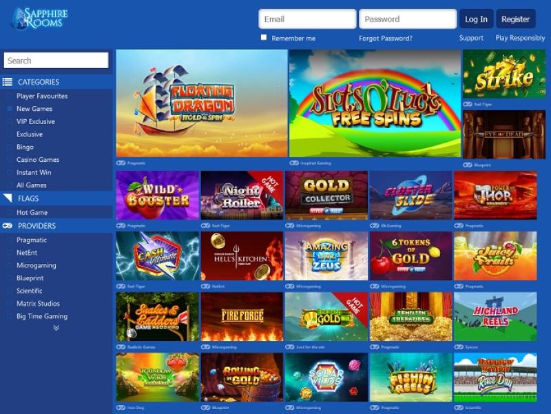 Sapphire Rooms Casino 由 Microgaming, Net Entertainment, Big Time Gaming, ELK Studios, EYECON, Habanero Systems, lightningboxgames, Rabcat, Yggdrasil, Realistic Games, Pragmatic Play, Red Tiger Gaming, IGT, Skillzzgaming, Triple Edge Studios, Northern Lights Gaming, Stormcraft Studios, All41 Studios, Gameburger Studios, Slot Factory, Neon Valley Studios, Golden Rock Studios, SpinPlay Games, GONG Gaming, Buck Stakes Entertainment, Games Global, Blueprint Gaming, Merkur Gaming, Nektan, NextGen, NYX Interactive, Inspired Gaming, SG Interactive, Scientific Games, Iron Dog Studio, Foxium, Just For The Win, PearFiction Studios, Slingshot Studios, Rocksalt Interactive, 4ThePlayer, Gamevy, Crazy Tooth Studio, Alchemy Gaming, ReelFeel Gaming, Snowborn Games, Hacksaw Gaming and Aurum Signature Studios提供支持,其游戏通过基于网页的即时游戏平台提供,让您可以直接通过手机浏览器进行游戏。此外,它还提供桌面支持,让玩家也可以通过浏览器进行游戏。