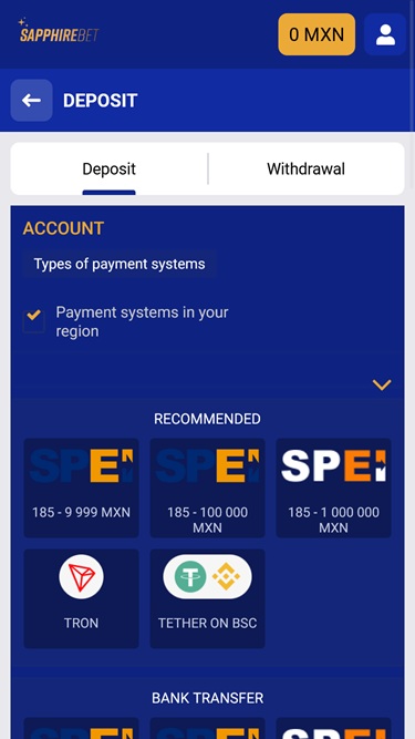 Banking银⾏业务选项 的 Sapphirebet Casino