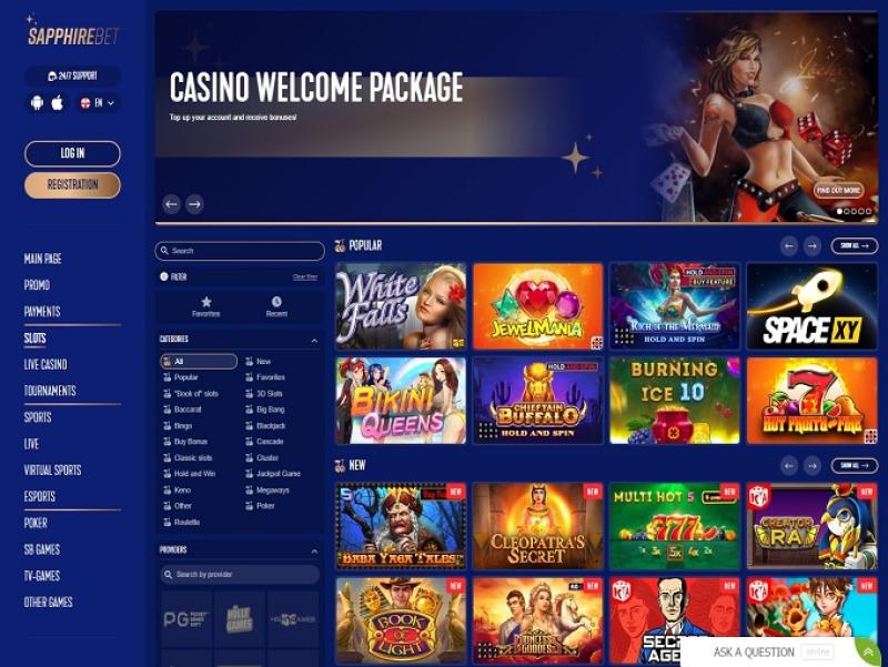 Sapphirebet Casino 是一个大型在线博彩平台,旨在吸引来自巴西、挪威、波兰和乌克兰的玩家,提供丰富的博彩游戏和体育博彩选择。该在线赌场规模庞大,玩家可以探索数千款游戏,包括真钱老虎机、真人荷官、速成游戏、宾果游戏和桌面游戏,同时还提供丰富的促销计划和丰厚的奖金。