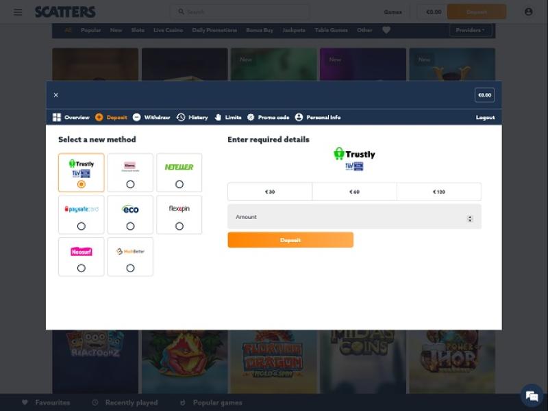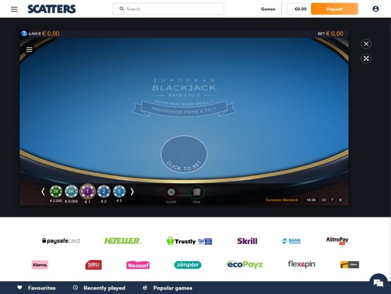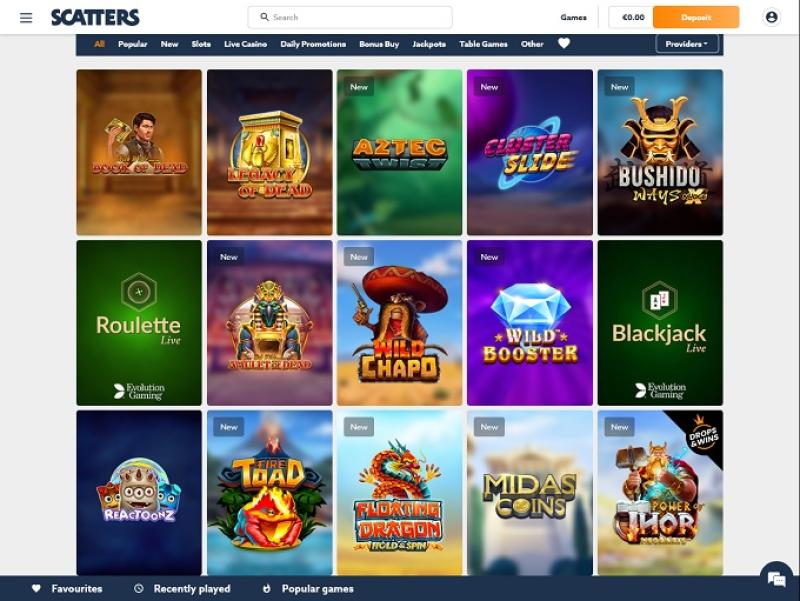 Scatters 由 Microgaming, Net Entertainment, BetSoft, 1x2gaming, Big Time Gaming, Evolution Gaming, Ezugi, Genesis Gaming, Habanero Systems, Novomatic, Play'n GO, playson, Quickspin, Relax Gaming, Thunderkick, Vivo Gaming, Endorphina, Betgames, PlayPearls, Pragmatic Play, Nolimit City, Felt Gaming, Red Tiger Gaming, Spinomenal, Felix Gaming, Fugaso, Fantasma Games, Kalamba, Revolver Gaming, Platipus Gaming, Skywind, Spinmatic, Spadegaming, Northern Lights Gaming, Fazi, Evoplay, Stormcraft Studios, Switch Studios, OneTouch, Pocket Games Soft, Triple PG, All41 Studios, Mascot Gaming, Gameburger Studios, Pulse 8 Studios, Slot Factory, Neon Valley Studios, Golden Rock Studios, Swintt, Woohoo Games, SpinPlay Games, Qora Games, SmartSoft Gaming, GONG Gaming, On Air Entertainment, Buck Stakes Entertainment, Caleta Gaming, Games Global, Reevo, 2by2 Gaming, Blueprint Gaming, Merkur Gaming, Tom Horn Gaming, Mr Slotty, Reel Time Gaming, BF Games, betiXon, Iron Dog Studio, Old Skool Studios, Slingshot Studios, AvatarUX, Crazy Tooth Studio, ReelPlay, Alchemy Gaming, BB Games, Snowborn Games, Hacksaw Gaming, Max Win Gaming, Gold Coin Studios, Gamzix, Half Pixel Studios, Peter And Sons, Eurostar Studios, Aurum Signature Studios, Lucksome Gaming, Area Vegas, Bombay Live, Leap Gaming, Kiron, 3 Oaks Gaming, Wishbone Games, Spribe, Circular Arrow, Print Studios, HammerTime Games, INO Games, Nailed It! Games, Neko Games, Reel Kingdom, Oros Gaming and PlayAce提供支持,赌场游戏通过网页平台提供,可直接通过您的网络浏览器加载。网站界面美观,易于浏览,并且还支持移动端,方便您使用智能手机或平板电脑进行博彩。