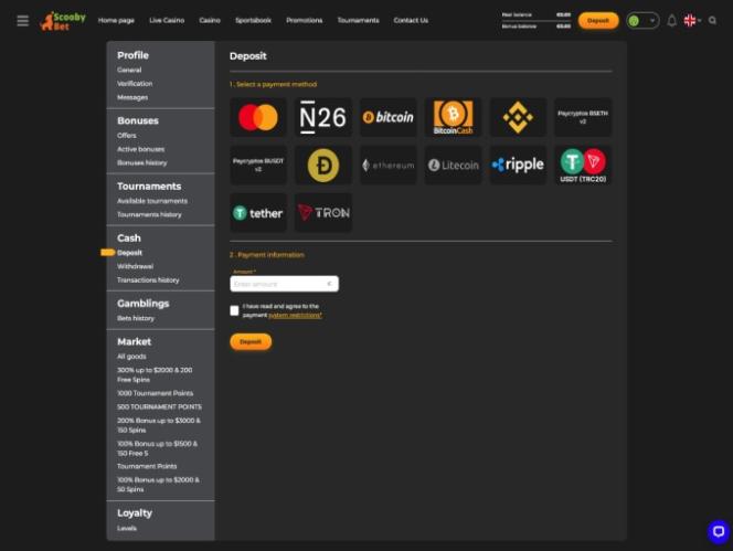 Banking银⾏业务选项 的 ScoobyBet Casino