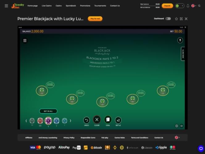 ScoobyBet Casino Blackjack (Realistic Games)展开