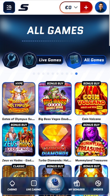 除了拥有设计精美、布局出色的炫酷网站外,这家博彩网站也毫不吝啬地展示了其所有游戏和活动。玩家可以访问包含数千款游戏的庞大游戏库,涵盖在线老虎机、真人荷官游戏、桌面游戏,甚至包括即时崩溃游戏。