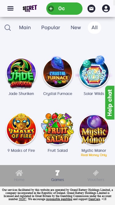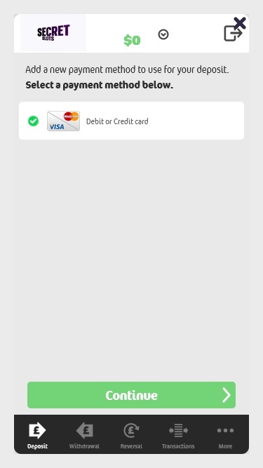 SecretSlots 赌场由 Microgaming, Net Entertainment, Random Logic, Barcrest, Big Time Gaming, ELK Studios, EYECON, iSoftBet, lightningboxgames, Novomatic, Quickspin, Thunderkick, Yggdrasil, Wazdan, Realistic Games, Pragmatic Play, Red Tiger Gaming, IGT, Red Rake Gaming, Skillzzgaming, Sigma Gaming, Triple Edge Studios, Northern Lights Gaming, Dreamtech Gaming, Bulletproof Games, Gluck Games, Games Global, Wizard Games, Ainsworth, Bally Technologies, Blueprint Gaming, Endemol Games, Greentube, Merkur Gaming, NextGen, Pariplay, WMS, Inspired Gaming, SG Interactive, Reel Time Gaming, Bally Wulff, Storm Gaming Technology, 4ThePlayer, Gamevy, High 5 Games, Pirates Gold Studios, AGS Interactive and Max Win Gaming提供支持,提供丰富的赌场游戏。您可以通过网页平台访问该赌场,直接在网页浏览器上畅玩。