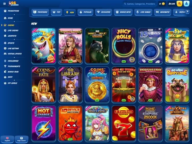由于并非所有玩家都希望在网上赌场玩老虎机游戏,SG 的运营商确保玩家可以花时间玩真人荷官的热门桌面游戏,或者尝试投注一些体育赛事。对于喜欢探索的玩家来说,有很多选择。