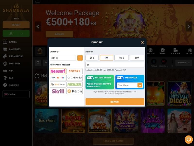 只需查看其游戏库中的游戏选择,就能轻松识别一家真正关心玩家的赌场。赌场软件供应商的列表充分体现了运营商为满足玩家的博彩需求所付出的努力。Shambala 由SoftSwiss提供支持,其合作伙伴还包括:NetEnt、Playtech、Spinomenal、Evolution 等。