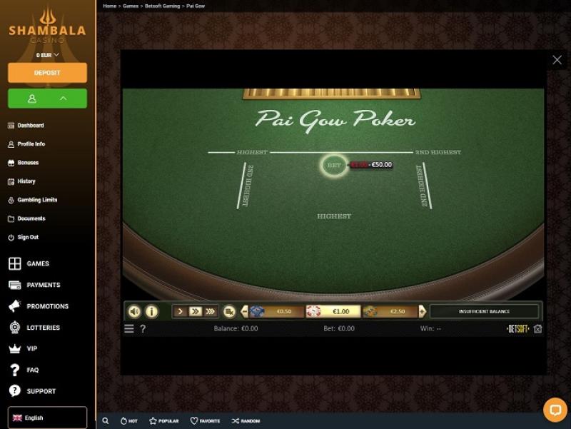 Shambala 流行的桌面游戏有:四张同点扑克、1 手 Aces and Eights、10 手 Aces and Eights、100 手 Aces and Eights、5 手 Aces and Eights、50 手 Aces and Eights、1 手全美扑克、10 手全美扑克、100 手全美扑克、5 手全美扑克、50 手全美扑克、21 点 7、10 手奖励 Deuces Wild、100 手奖励 DeucesWild、5 手奖励 Deuces Wild、50 手奖励 Deuces Wild、1 手奖励扑克、10 手奖励扑克、100 手奖励扑克、5 手奖励扑克、50 手奖励扑克、赌场德州扑克、Deuces Wild、1 手 Deuces Wild……