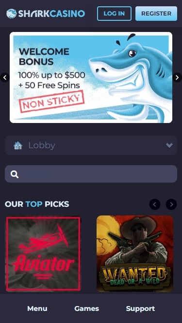 该赌场平台采用深蓝色海洋配色,对于Shark这个品牌来说,这绝对是合乎逻辑的选择。这个引人入胜、设计精良、功能齐全的网站响应迅速,并针对所有设备(包括桌面和移动设备)进行了优化,而且它拥有我们梦寐以求的游戏——占据了最显眼的位置!