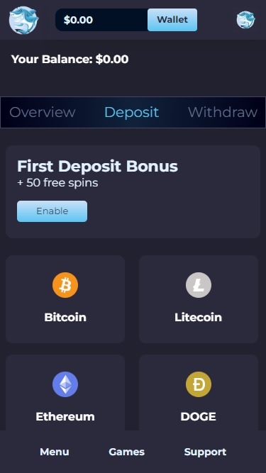 它配备了由一些最受尊敬的 iGaming 公司制作的大型游戏集合,包括顶级加密赌场游戏,例如:Aviator、Dice、Plinko、Mines、HiLo、Mini Roulette、Keno、Goal 等。