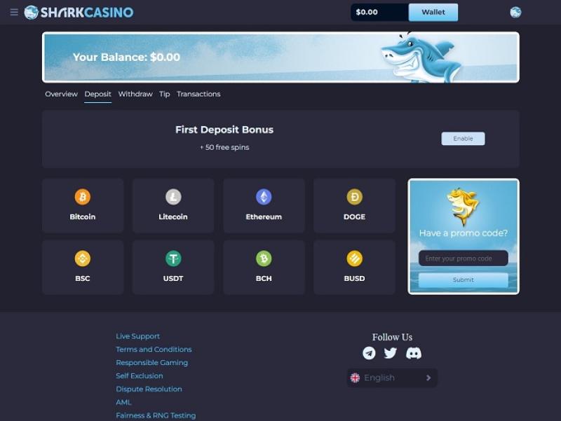 Shark Casino 是一个仅使用加密货币的在线赌场,在这个游戏场所,玩家可以使用各种流行的加密货币进行存款和取款,并且可以立即处理一定金额以下的资金。