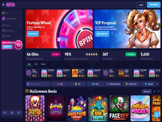 Sixty6 Casino于2025年上线,是一家功能齐全的社交赌场,主要面向美国玩家,提供丰富的赌场游戏选择,以在线老虎机和即时崩溃游戏为主。该品牌以其庞大的促销活动而闻名,包括激动人心的奖金、促销、赠品和忠诚度奖励,因此喜欢参与抽奖活动的玩家总能从中获得好处。