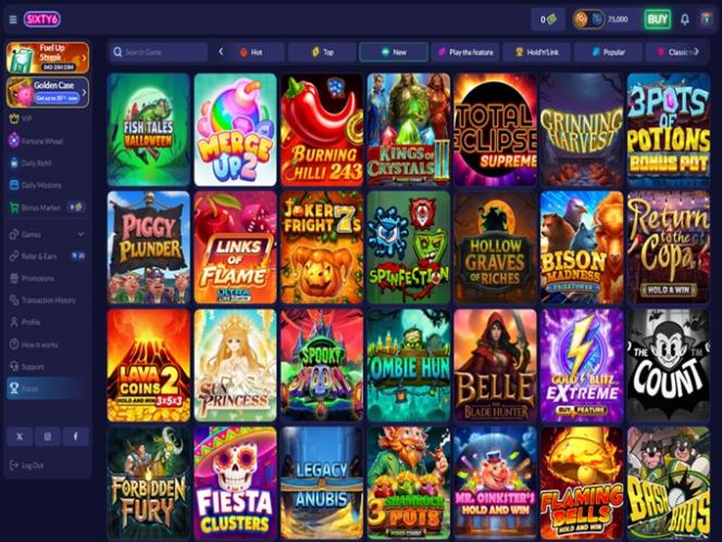 说到具体的游戏类型,您可以在 Sixty6 赌场畅玩,而在线老虎机将占据您大部分时间。与其他许多抽奖式赌场一样,该品牌主要专注于提供种类繁多的老虎机游戏,涵盖众多类别和类型,包括集群支付、累积奖金、Megaways、Hold n' Links、经典老虎机和奖励购买。