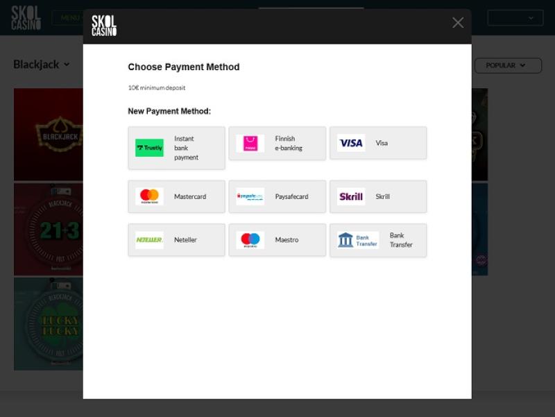 赌场提供多种存款和取款支付方式,包括电子钱包、信用卡和银行电汇。公司不收取任何交易费用。