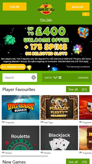 Slot Fruity Casino 由 Microgaming, Net Entertainment, Big Time Gaming, ELK Studios, Evolution Gaming, EYECON, Habanero Systems, lightningboxgames, Yggdrasil, Realistic Games, Pragmatic Play, Red Tiger Gaming, IGT, Skillzzgaming, Golden Rock Studios, Games Global, Blueprint Gaming, Merkur Gaming, Nektan, NextGen, NYX Interactive, Inspired Gaming, SG Interactive, Scientific Games, Iron Dog Studio, Foxium, Just For The Win, The Games Company, Rocksalt Interactive, 4ThePlayer, Gamevy, Crazy Tooth Studio and ReelFeel Gaming提供支持,其游戏通过即时播放平台和移动网站提供,可通过智能手机和平板电脑进行游戏。Baccarat