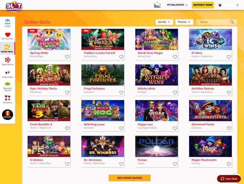 Slot Madness Casino 由 Real Time Gaming and Spinlogic Gaming提供支持,它拥有一个游戏库,可通过可下载的软件和即时播放模式访问,但并非所有游戏都可以在基于网络的平台上使用。