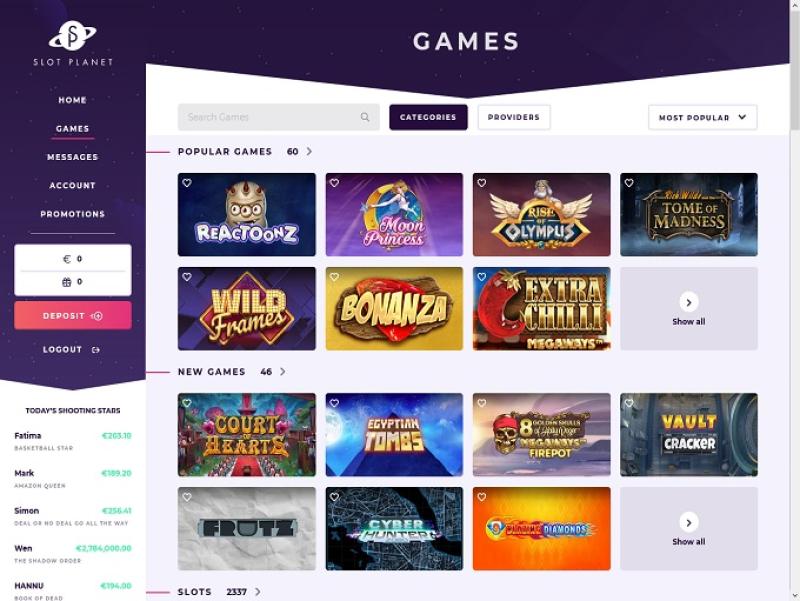 Slot Planet Casino 成立于 2005 年,原名 Amsterdam's Casino,2016 年更名为 Slot Planet,是一家由 White hat (Holding) Limited 运营的在线博彩网站。虽然这家新赌场最近才正式上线,但它之前曾以 Amsterdams Casino 的名义运营。该网站本身提供海量游戏,但游戏体验并不理想,因为奖金到账需要一段时间,而且奖金的下注要求也比我预期的要高。