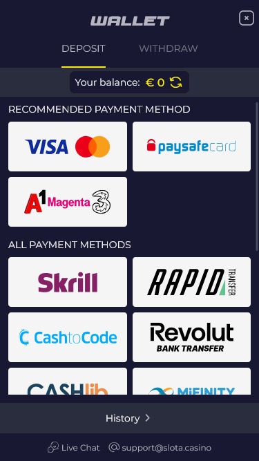 假设您有兴趣在 Slota Casino 创建一个账户。如果您喜欢各种赌场游戏,您会很高兴知道该品牌提供丰富的选择,从激动人心的在线老虎机、真人荷官、桌面游戏到即时游戏和速成游戏,应有尽有。