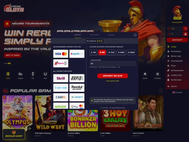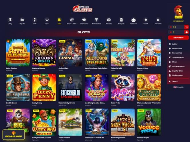 Slota Casino 最突出的特色之一是其丰富的促销计划。游戏网站提供各种促销、活动和奖金,让玩家享受刺激又愉快的游戏体验。如果您是首次在此创建账户,您可以获得丰厚的迎新奖金。
