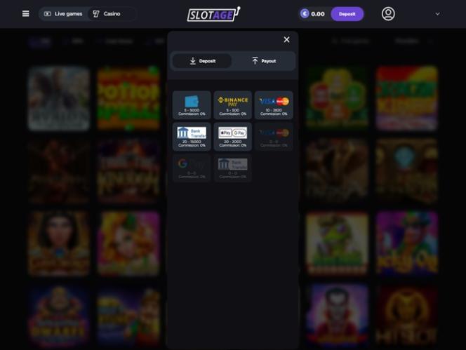 Slotage Casino 提供的支付方式支持多种法定货币,其中包括加元、欧元和美元等。
