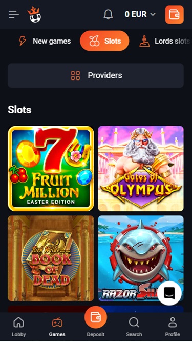 此外,平台本身也很漂亮。运营商选择了黑色和橙色的配色,赋予赌场独特的外观,我们相信很多人都会喜欢。这种风格融合了简约的氛围,不会让玩家感到压抑或困惑。