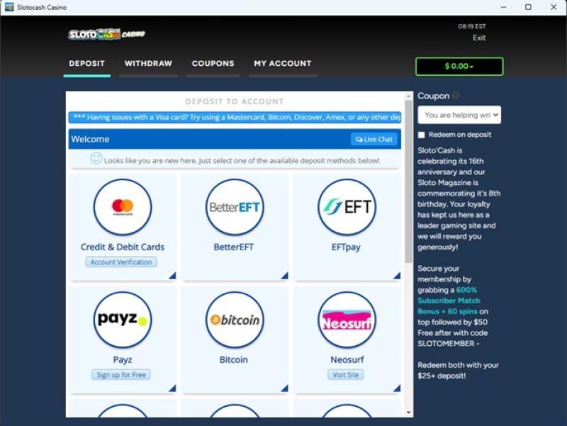 多年来,Sloto' Cash 已被证明是一家值得信赖的在线赌场,玩家提出的唯一已知问题是每周 4,000 美元的提款限额,该限额不适用于累积奖金。
