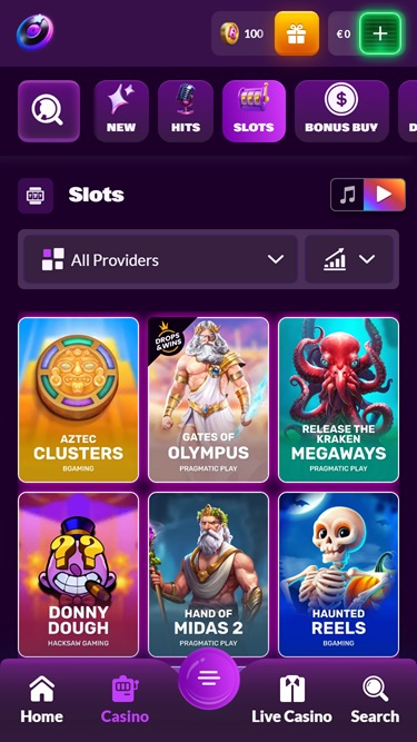 “购买奖励”老虎机游戏 让赌场玩家可以直接购买进入奖励功能的机会,无需在常规游戏过程中等待额外旋转机会的触发。Slotrave 提供众多“购买奖励”游戏,包括 Wild Fox、Deal With Death、Immortal Desire、The Rave、Wanted Dead or a Wild、Alchemist Bonanza、Anubis Treasure、Wolf Thunder、Voodoo People、Big Wild Buffalo、Slayers Inc、4 Secrets of Aladdin、Beam Boys、Beast Below、Dragon's Bonanza、Mice & Magic Wonder Spin 等等。