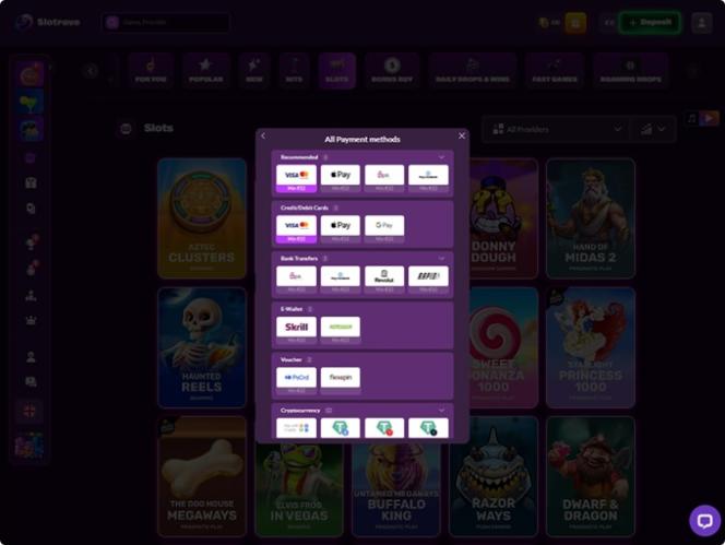 如果您想了解促销部分包含哪些赌场奖金 ,以下是您在 Slotrave 从第一天起即可享受的一些奖励。