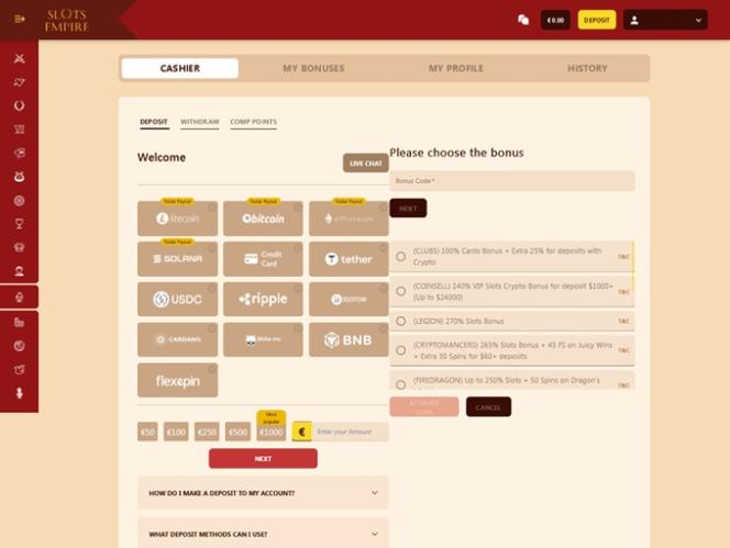 Slots Empire Casino 是一个在线博彩网站,自 2019 年起运营。该赌场服务于美国博彩市场,是 El Royale 和 Red Dog 的姊妹网站。它采用 RTG 软件,外观精美,潜力巨大,但较高的最低提款额可能会让一些玩家望而却步。