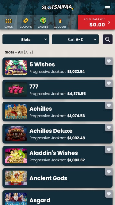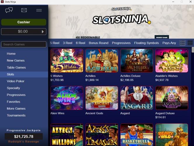 首先,我们要指出的是,Slots Ninja 绝非一家“只提供老虎机”的在线赌场。访问该网站的玩家将有机会探索多个引人入胜的类别,包括:新游戏、累积奖金、老虎机、特色游戏、桌面游戏和视频扑克。在撰写本文时,唯一缺少的类别是真人荷官赌场部分。