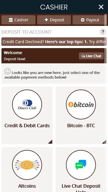 这家美国友好的在线赌场为玩家提供多种存款和取款支付方式。玩家可以使用多种加密货币银行方式,以及更标准的支付方式,例如流行的电子钱包和支付卡。