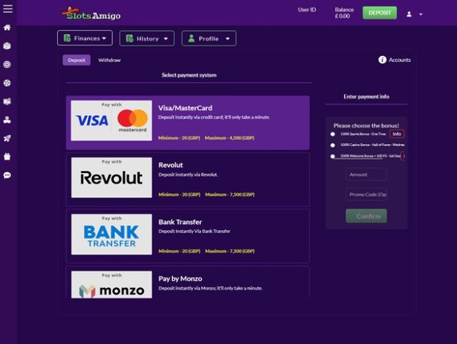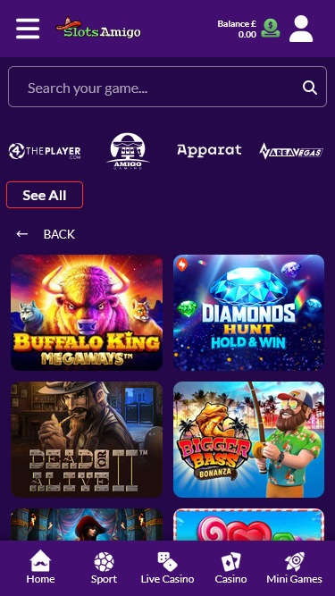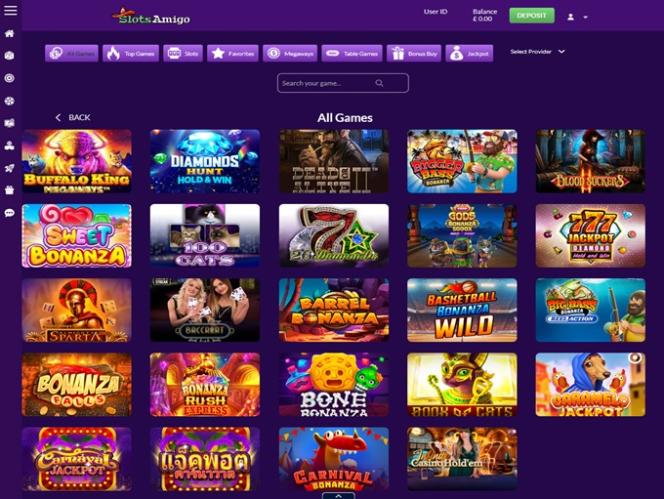 正如您所料,该品牌最大的吸引力在于其丰富多样的在线老虎机游戏组合。如果您正在寻找能够提供数千款涵盖众多类别、风格和机制的精彩老虎机游戏的在线赌场,SlotsAmigo 就是您的最佳选择。