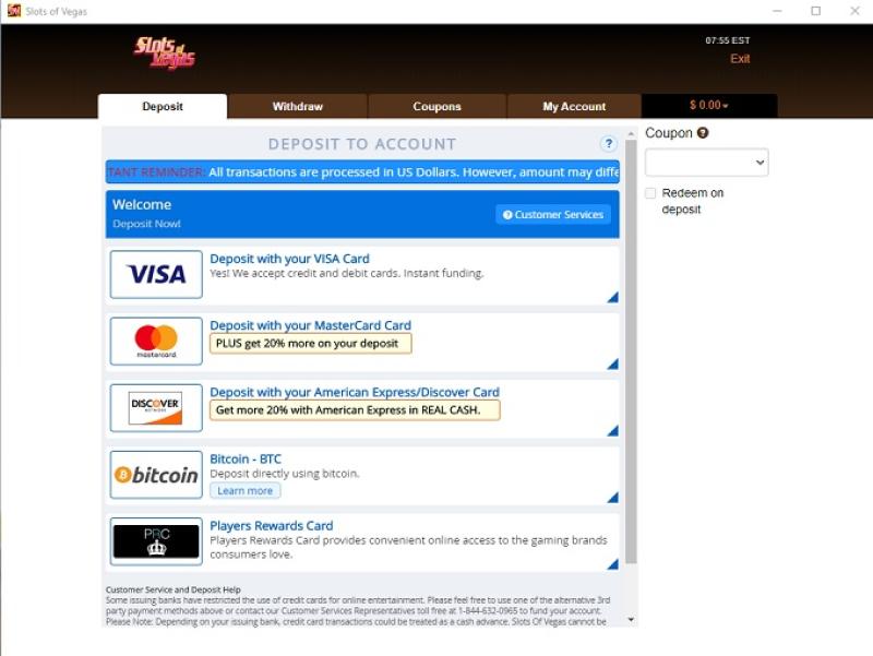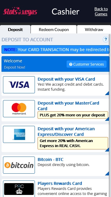 Slots of Vegas Casino 由 Real Time Gaming and Spinlogic Gaming提供支持,让玩家有机会通过可下载的软件和基于网络的平台访问赌场,并可以通过网络浏览器进行游戏。Baccarat