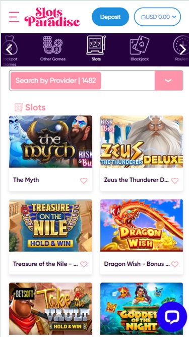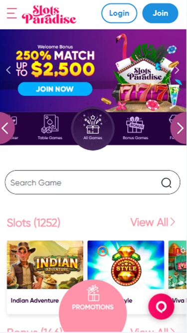 这里唯一可用的语言选项是英语,这很正常,因为这是一个面向美国的平台。此外,值得注意的是, SlotsParadise Casino 的所有游戏都针对移动博彩体验进行了全面优化。它完全支持 Android 和 iOS 设备,无需下载其他应用程序即可畅享游戏。
