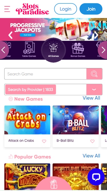 SlotsParadise 赌场平台拥有超过 25 家软件供应商的丰富资源。尽管这个数字可能并非我们见过的最大,但该运营商已获得多家知名工作室的授权,这些工作室已推出众多深受玩家喜爱的游戏。