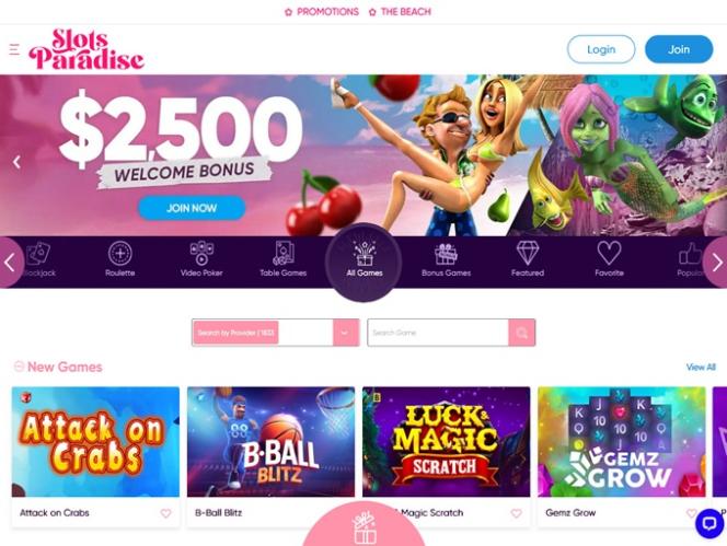 SlotsParadise 赌场专门欢迎来自美国的玩家,其网站主页提供科摩罗联盟博彩许可证。