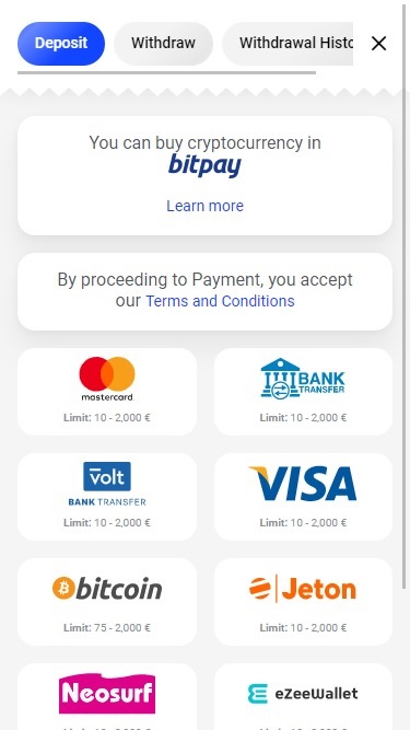 赌场的“Cashbox”支持多种存款和取款支付方式,包括加密货币银行选项、支付卡、许多流行且安全的电子钱包和直接汇款。
