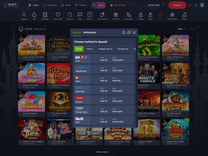 Slotv 赌场由 Microgaming, Net Entertainment, Playtech, 1x2gaming, Amatic Industries, Barcrest, Big Time Gaming, ELK Studios, Evolution Gaming, Ezugi, Genesis Gaming, Habanero Systems, iSoftBet, lightningboxgames, Oryx, Play'n GO, playson, Quickspin, Relax Gaming, Rival, Thunderkick, Yggdrasil, Endorphina, Wazdan, Realistic Games, GameArt, Betgames, Booming Games, Stakelogic, Pragmatic Play, Nolimit City, Felt Gaming, Red Tiger Gaming, Booongo, Spinomenal, Red Rake Gaming, Skillzzgaming, Fugaso, Belatra Games, Fantasma Games, SYNOT Games, Kalamba, Revolver Gaming, Spin Games, Skywind, Triple Edge Studios, Northern Lights Gaming, Fazi, Evoplay, Stormcraft Studios, Switch Studios, SA Gaming, Electric Elephant Games, Pocket Games Soft, Bulletproof Games, All41 Studios, Gluck Games, Mascot Gaming, Gameburger Studios, Pulse 8 Studios, Neon Valley Studios, Swintt, TrueLab Games, Shuffle Master, SpinPlay Games, SmartSoft Gaming, Real Dealer Studios, Blue Guru Games, On Air Entertainment, Buck Stakes Entertainment, Elysium Studios, Games Global, Amusnet Interactive, 2by2 Gaming, Ainsworth, Ash Gaming, Bally Technologies, bluberi, Blueprint Gaming, CT Interactive, NextGen, NYX Interactive, Push Gaming, Tom Horn Gaming, WMS, SG Interactive, Gamomat, CORE Gaming, Scientific Games, Reel Time Gaming, Authentic Gaming, BF Games, betiXon, Bally Wulff, Iron Dog Studio, Old Skool Studios, Foxium, Betdigital, Just For The Win, Reflex Gaming, Storm Gaming Technology, Bla Bla Bla Studios, PearFiction Studios, Apollo Games, Wild Streak Gaming, Slingshot Studios, Golden Hero, Fortune Factory Studios, STHLM Gaming, RubyPlay, 4ThePlayer, AvatarUX, Gamevy, Crazy Tooth Studio, NetGaming, ReelPlay, Japan Technicals Games, Zonelock, SlotVision, Alchemy Gaming, Rarestone Gaming, Black Pudding Games, Snowborn Games, Boomerang Studios, Hacksaw Gaming, Max Win Gaming, Gold Coin Studios, Bang Bang Games, Gamzix, Half Pixel Studios, Arcadem, Slotmill, SilverBack Gaming, Peter And Sons, Eurostar Studios, Aurum Signature Studios, Lucksome Gaming, Area Vegas, ELA Games, Leap Gaming, 3 Oaks Gaming, Wishbone Games, Spribe, Circular Arrow, Print Studios, Gaming Corps, HammerTime Games, Four Leaf Gaming, INO Games, Nailed It! Games, Live 5, Atomic Slot Lab, Neko Games, Reel Kingdom, Oros Gaming, Givme Games, Indigo Magic and Light & Wonder提供支持,其游戏通过基于网页的即时游戏平台提供,可通过您的网络浏览器加载。该赌场还支持移动端游戏,用户可以通过智能手机和平板电脑进行游戏。