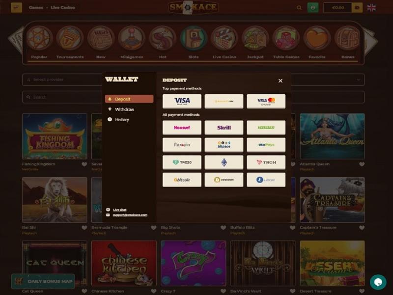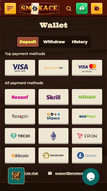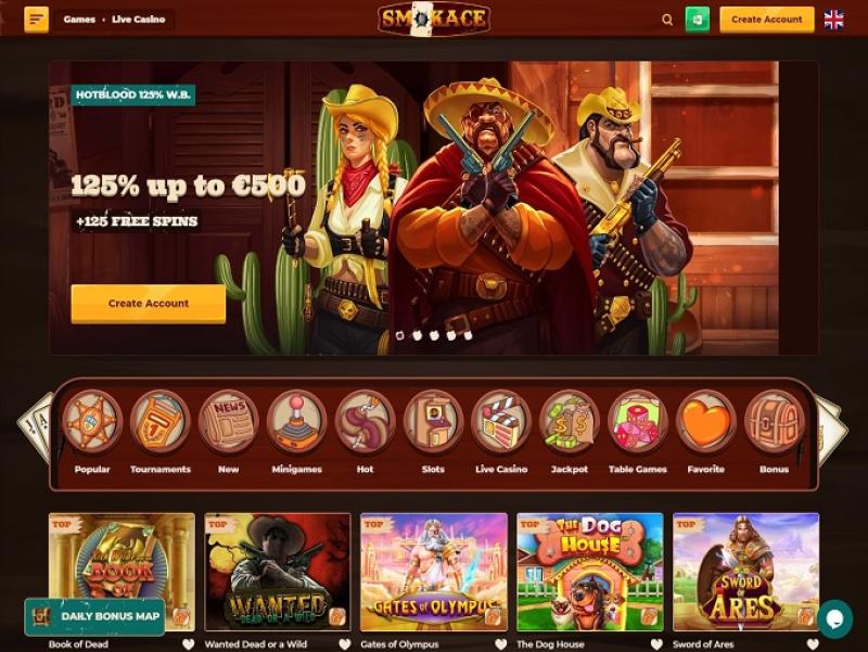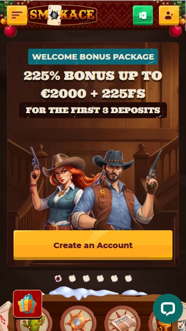 如果您是狂野西部风格的爱好者,那么您一定会喜欢设计师对 SmokeAce 赌场外观的巧妙诠释。它采用狂野西部主题,但又不会过度刺激用户。界面简洁,充满乐趣。