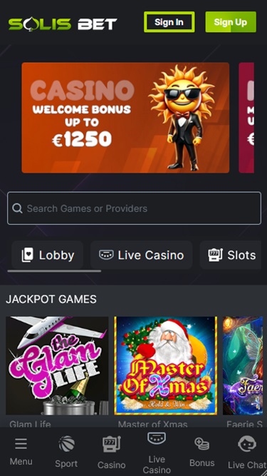 - 如果怀疑玩家违反赌场的条款和条件,Solis Bet 保留自行决定拒绝注册新玩家账户或关闭任何账户的权利。