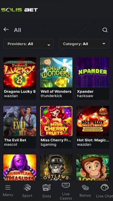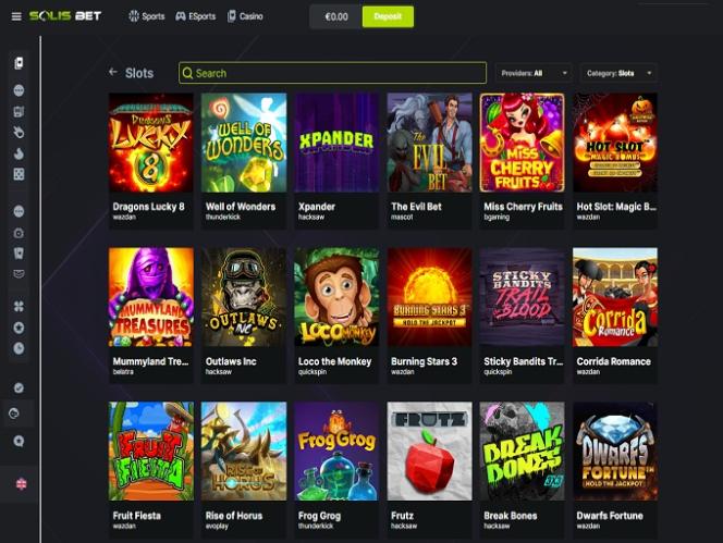 Eggstra Cash、Destiny of Sun and Moon、Joker Bombs、X-Mas Buffalo、Gronk's Gems、Beauty and the Beast、Really Hot Flaming Edition、Magic Stars 5、Titan Thunder: Wrath of Hades、Hot Slot: 777 Crown、Genie's 3 Wishes、Dig Dig Dig Digger、Alien Fruits x15000、Buffalo Ice: Hold The Spin、ITERO、Gamba Mamba、Leprechaun Hills、Forest Dreams、Reel Joke、Big Bad Wolf Megaways、20 Super Stars、Rotten、Irish Weekend Bonus Buy、Magic Garden 40、Wild Cash Dice、Sold It!、Monkey's Journey、All Lucky Clovers 100 Lines、Dino Reels 81、Beast Band、Fortune Cats Golden Stacks、Gem Saviour Sword、Carnival Queen、Good Luck 40、Tasty Treats、Spinguin、Hand of Anubis弗兰克农场、北方繁荣、苏联 70、太阳之王、海盗冲突、丰收荒野、狂野女孩、热门老虎机:777 皇冠、史诗角斗士、神秘精神、水果七、9 龙王、热门三七、皇帝之门 SA、柏钦女孩、12 个硬币、现金罗盘、宝石殿堂、太阳石、自动售货机、火热七独家、季节姐妹、雪币:旋转、顽皮女孩歌舞表演、尼禄的财富、太阳神传奇、水牛堆叠同步、水果扭曲、魔法目标豪华版、十字交叉 81、幸运女王、幸运 9、Spinions 游戏日、水果疯狂、双倍财富、渡鸦比约恩、嘻哈熊猫、三重辣椒、燃烧之星 3、疯狂轰炸机、王牌女王、美味佳肴、动物探索、BetFury Solis Bet 还提供 Crystals、Aztec、Triple Christmas Gold、Magic Spins Xmas Edition、Azticons Chaos Clusters、Dwarfs Fortune Easter、Heist Stakes、Sweet Cocktail、Wanted Dead or a Wild、Domnitors、Crazy Ape、Ruby Hood、Magic Hot 4、Magic Hot 4 Deluxe、Fenix Play、Gem Splitter、Rich Caishen、Sizzling Moon、Lucky Punch Megaways、Royale House、Reel Hero、Coins Dare2Win、Night of the Living Tales、Sweet Bakery 以及众多其他在线老虎机游戏。