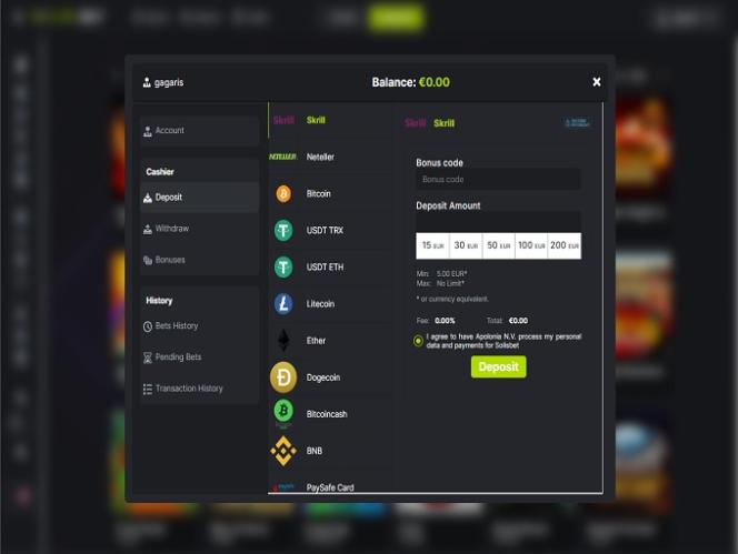 在 SolisBet,玩家可以通过多种银行方式享受快捷的支付交易,包括加密货币、信用卡和借记卡、电子钱包以及其他在线支付方式。请注意,提现处理时间最长可能需要三天。
