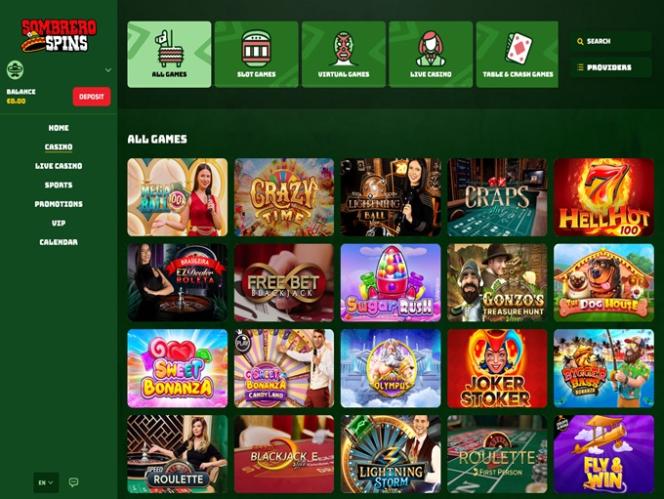幸运的是,Sombrero Spins 团队深谙此道,因此玩家可以在他们的网站上畅玩超过 8000 款独特的赌场游戏。游戏库包含来自 90 多家软件供应商的游戏,让您获得丰富多样的博彩体验。