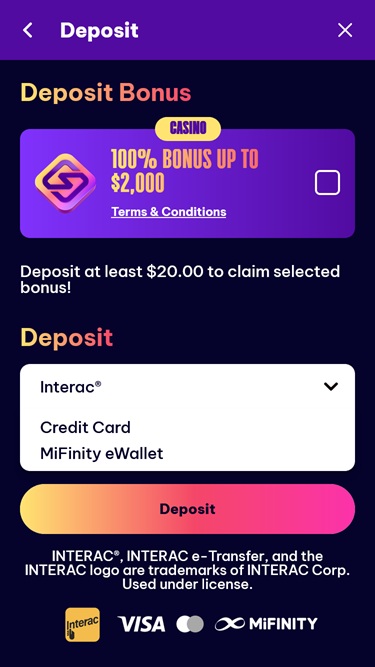 该网站视觉效果出色,采用简洁的用户界面和极简设计,加载速度极快,导航也十分便捷。同时,配色方案以深色背景和紫色调为主,赋予赌场独特的风格和个性。极简主义爱好者一定会喜欢这里,因为网站环境清爽,没有多余的装饰元素。